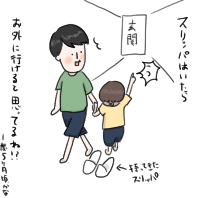 今日は1歳5ヶ月頃、お外へ行きたいみぃくんのお話です。