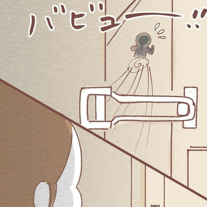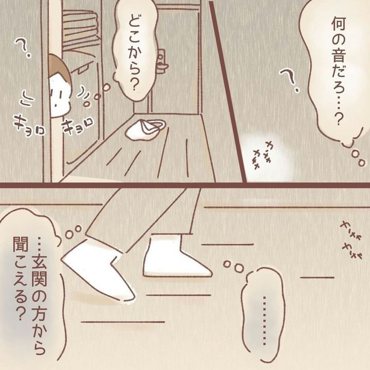 この作品は、紅ほっぺ(@beni_taihenne)さんが独身時代に体験した空き巣被害について描かれています。紅ほっぺさんが飲み会から帰宅し、トイレでウトウトしていると、どこからか不審な物音が聞こえてきました。不思議に思いカチャカチャと音のする玄関に向かうと、何といきなり鍵が回ってドアが開きました。『泥棒に入られた』第10話をごらんください。