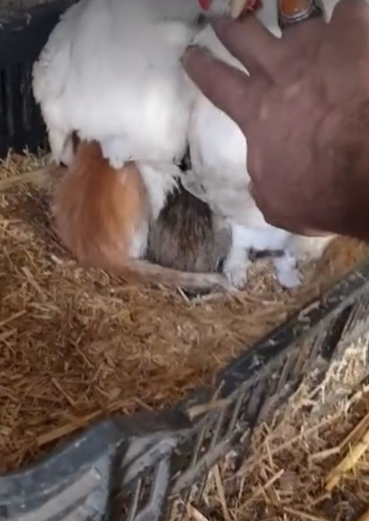 3. 【異種親子愛】そんなことあるの!?ニワトリが温めていたのは卵でもひよこでもなくまさかの子猫だった!