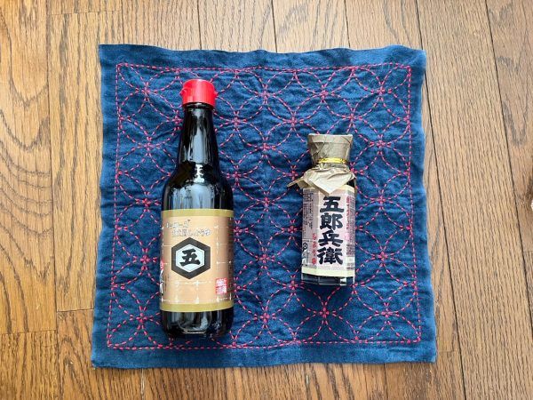 小さい方は醤油さしになっていて、創業者の名前から名付けられた「五郎兵衛醤油」が入っています。丸大豆醤油よりも旨味成分が多く含まれているそうで、冷奴やお刺身などへのつけかけに向いているとのこと。