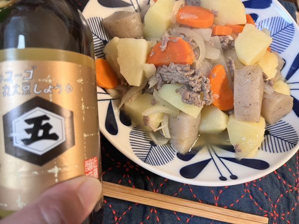 もうひとつ購入した丸大豆醤油は煮物などに向いているとのことでしたので、肉じゃがを作ってみました☆