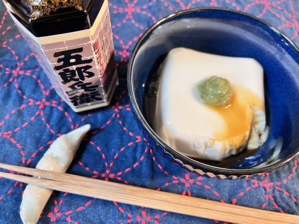 まずはお気に入りのお豆腐にわさびを添えて、五郎兵衛醤油をかけてみました☆