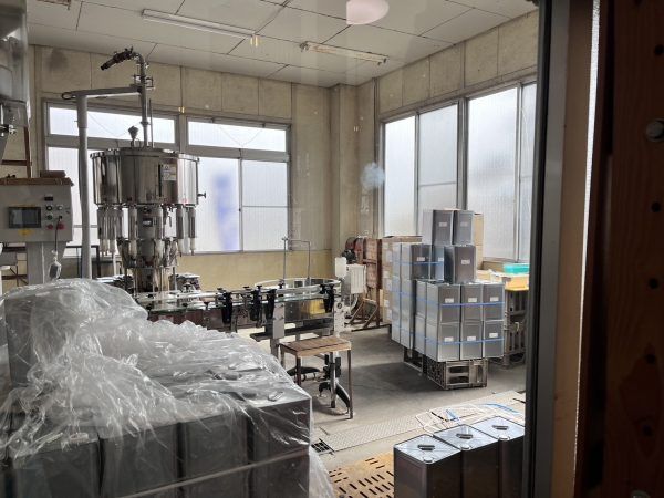 ちょうどお昼休みで作業は休憩中でしたが、直売所からは製造された醤油を瓶詰めする作業場を見ることができます。