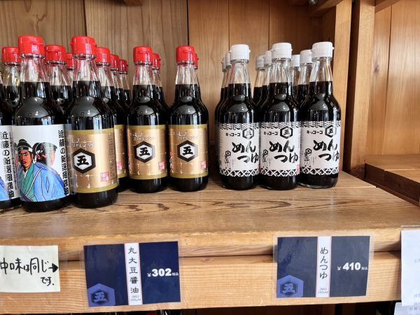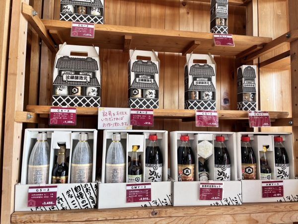 普段使いにもオススメなまろやかな味わいの丸大豆醤油に、ちょっぴり高価で贈り物にもぴったりな五郎兵衛醤油、そしてちょっと面白い醤油スイーツまで揃っている近藤醸造さんの直売所!