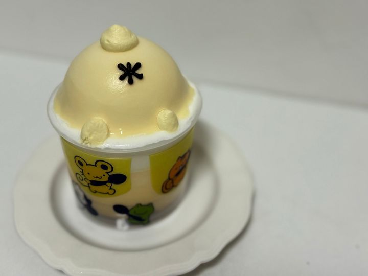 プリンの上に甘いバニラムースでできたポムポムプリンのお尻がのっていました。