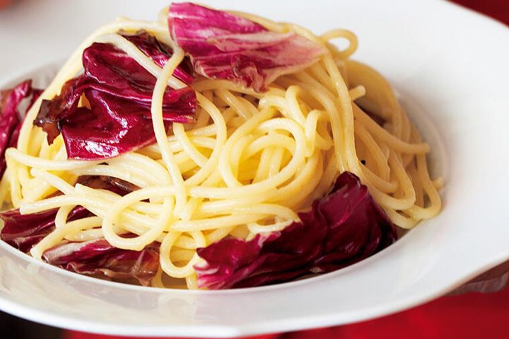 熱々のゆでたてスパゲッティに、ササッとオイルとチーズとトレビスをからめるだけ!鮮やかな色合いとほろ苦さが魅力の大人パスタです。食べると元気になる野菜パスタを食文化研究家である北村光世さんに教えてもらいました。