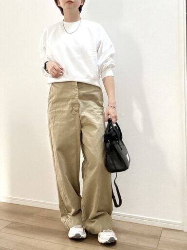 【無印良品】春は白の短丈スウェットが大正解。話題の¥1990「スウェットシャツ」着回し