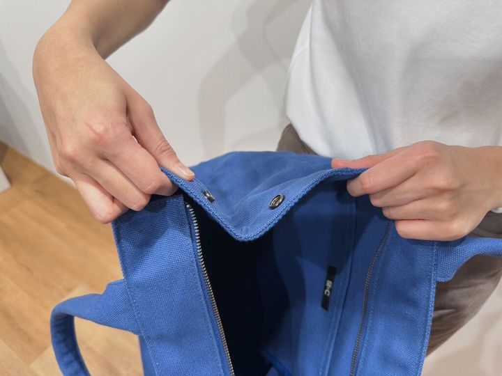 スナップボタンでマチの広さを変えることができます。