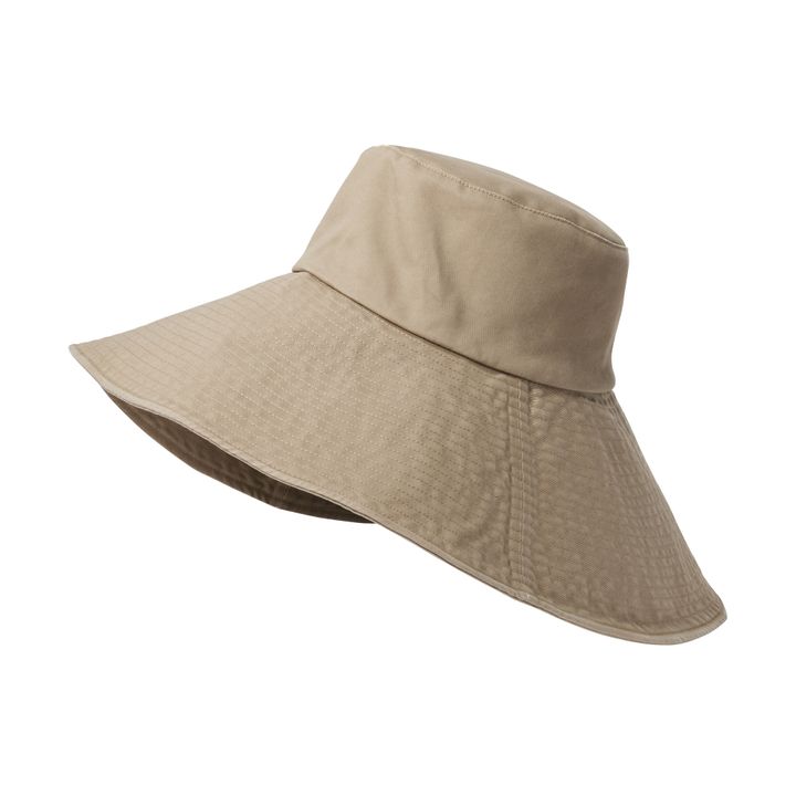 広めのツバとSPF50+の生地で、オシャレに紫外線対策ができるハット。ステッチワークや洗い加工を施しており、カジュアルな風合いが楽しめます。