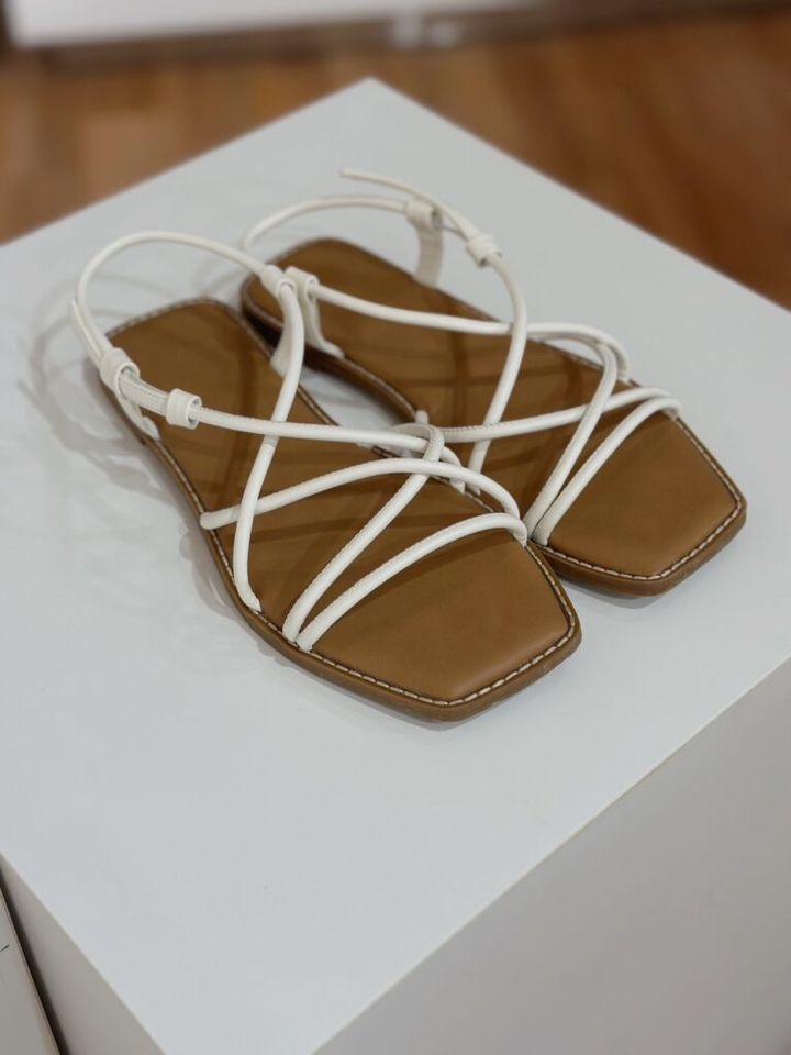 ストラップのみでデザインされた、無駄のない極めてシンプルな1足。繊細な構造が上品で華奢な足元を演出してくれます。抜け感たっぷりで、真夏でも涼しげ。