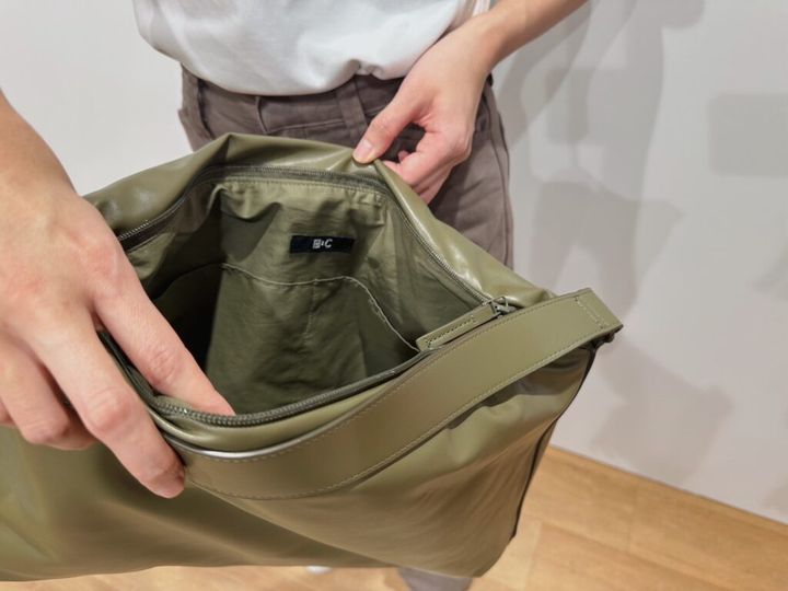肩がけしたフォルムも美しく、フェイクレザーの柔らかなニュアンスを楽しめます。