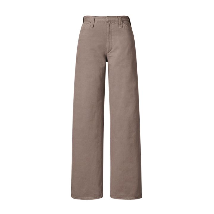 ハイウエストかつストンと落ちるストレートシルエットで、脚を長くまっすぐに見せてくれる1本。コットン100%素材で伸縮性があり、ウエスト周りにイヤな締めつけがなく、着心地は抜群です。