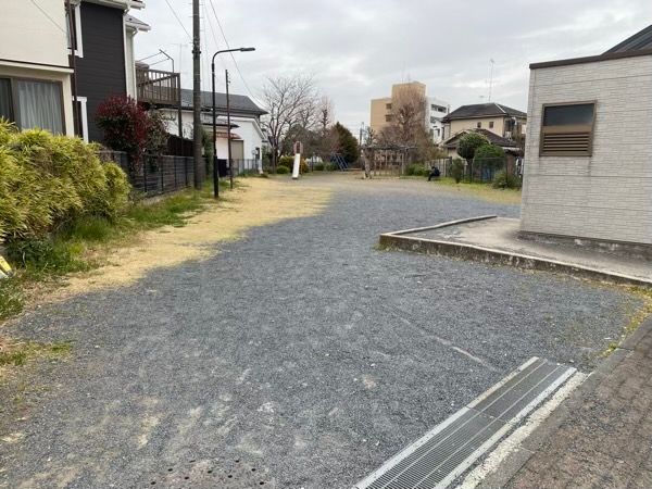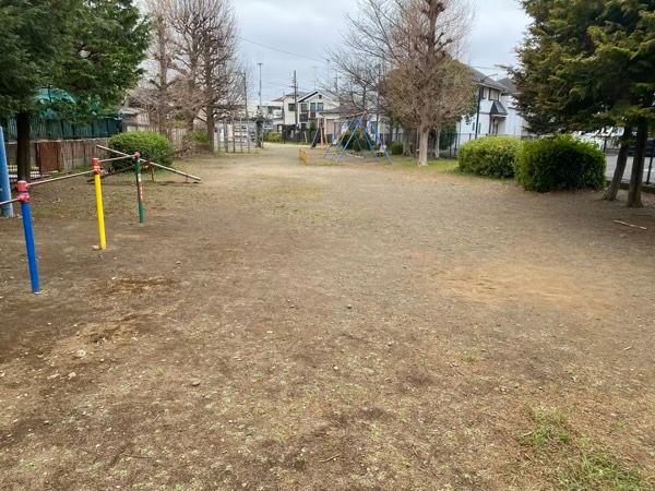 公園は、だいたい正方形や長方形の形が多いと思いますが、「緑川第三公園」は、縦にながーく伸びている公園です。下の写真は公園入り口から撮影していますが、まだまだ一番奥まで写り込んでいないくらい、縦にながーいのです!