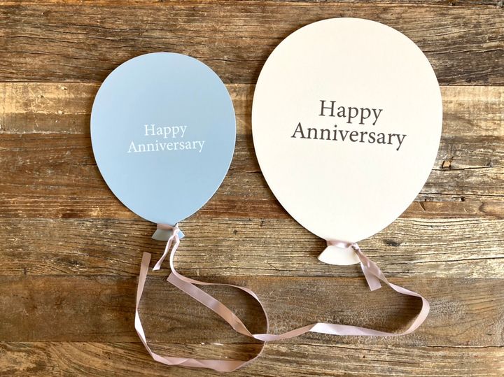 風船型のウッドプレートに、「Happy Anniversary」の文字入れがされたもの。