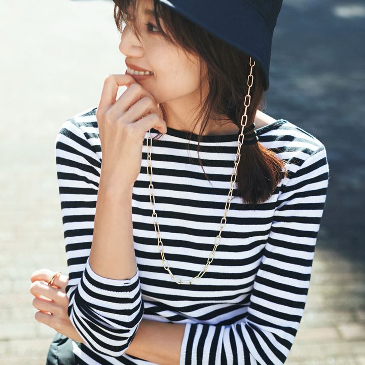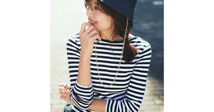 ハット¥5,940〈サードマガジン×ニューエラ〉マスクチェーン¥4,400〈サードマガジン×バーセルフ〉ボーダーカットソー¥6,050〈メルローズ×ロバートピーミラー〉(すべてサードマガジン)リング[2本セット]¥28,600(ローム/サージュブティック)
