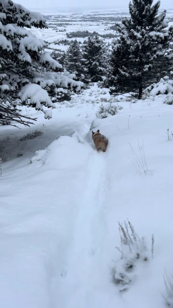 その日、撮影者さんは愛犬のコーギーを連れて、アメリカ・モンタナ州ボーズマンの雪山を訪れていました。