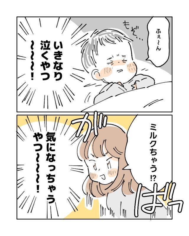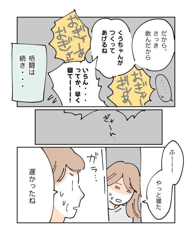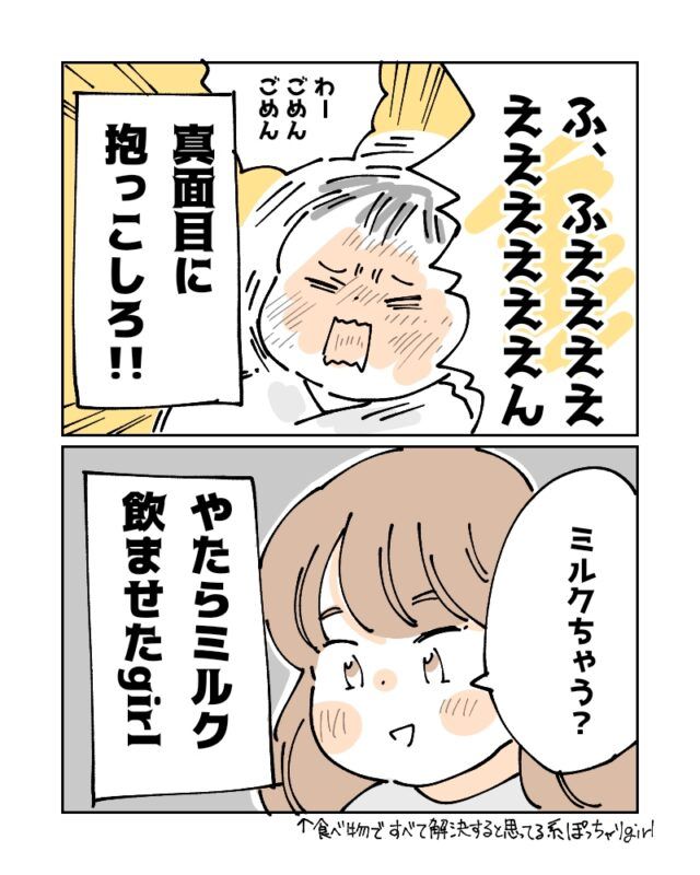 泣き続けるへうくん、ミルクをあげたいくうちゃんとの格闘は続き・・・