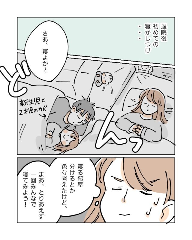 3. [5]初の2人同時寝かしつけ。泣き続ける新生児と興奮して寝ない2歳児に先が思いやられる。2歳差育児の記録|マキノの育児日記