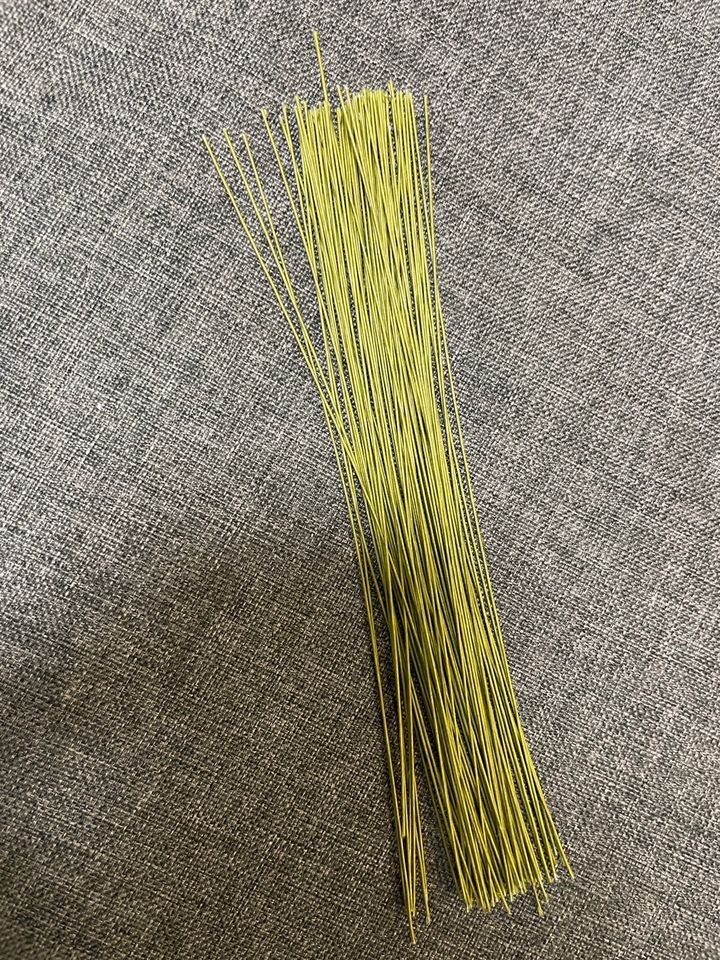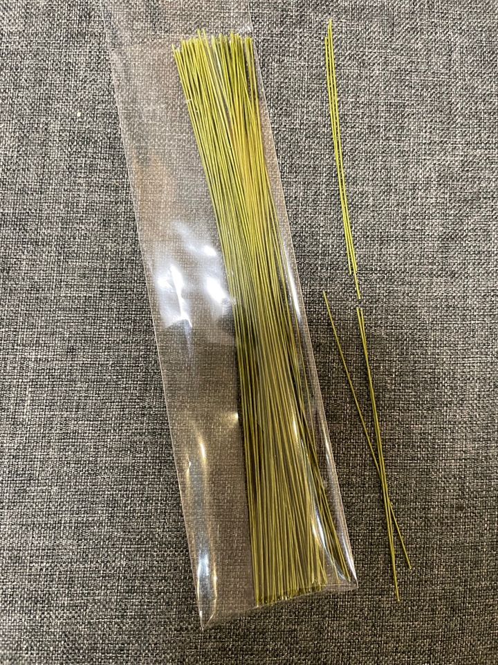 1.アレンジワイヤー(緑)を半分に切る(最初から短いものも売っているようで、そちらは切らなくて大丈夫かもしれないです。調整してください)