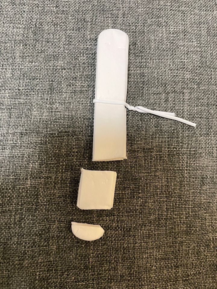 こんな感じで大体で大丈夫です!この場合、さらに縦に切って1.5cm位角にします。