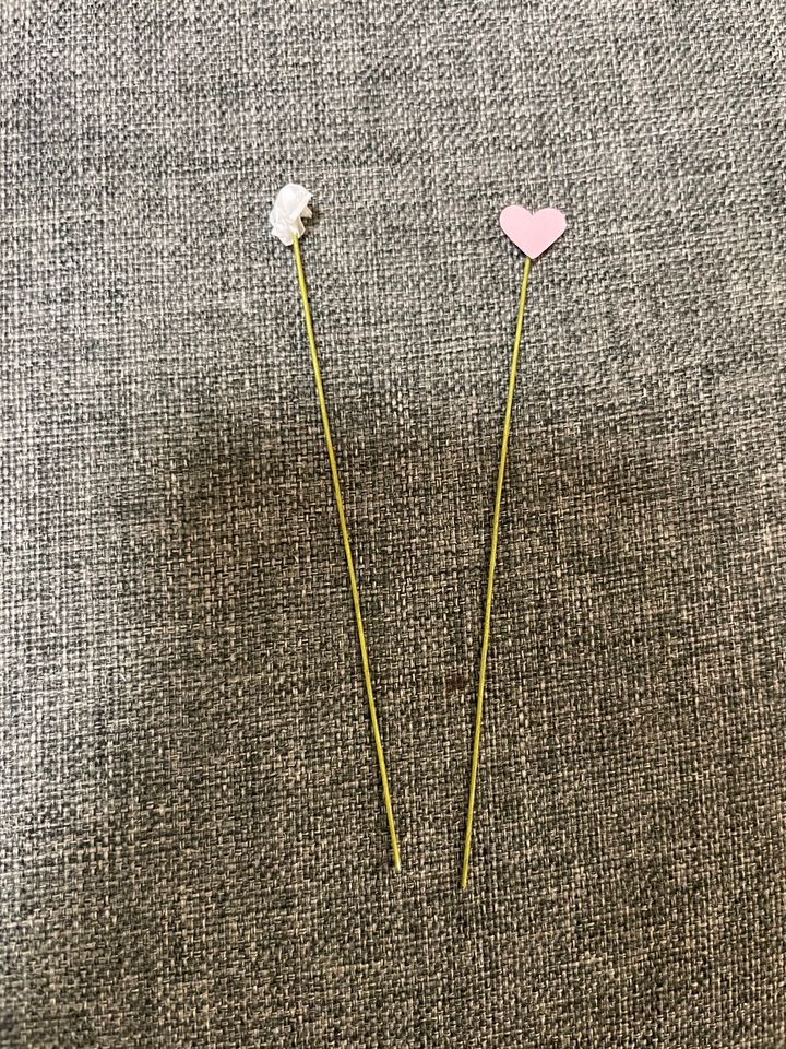 7.ハートはもっと簡単でカネダインをつけたワイヤーにペタッとくっつけます。カネダインをつけた側を上にして乾かしたら完成です。