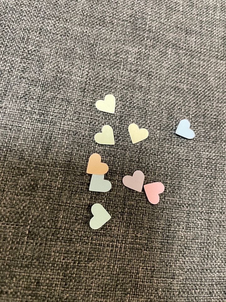 2.ハートのお花にする色のカラー画用紙をクラフトパンチで抜く