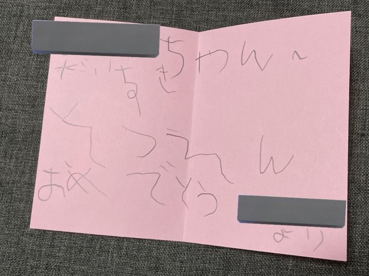 仲良しの年長さんにお手紙を書きたいとのことでカードを作って書きました。