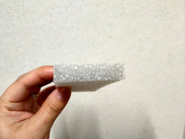 薄くても弾力がなく、ふにゃふにゃなスポンジもあるのですが、こちらはかなりしっかりしています。