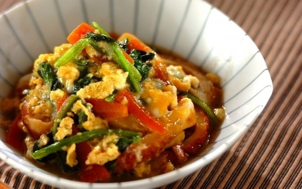 甘辛いだしで煮たホウレン草やちくわを卵でふんわりとじると、やさしい味わいの副菜が出来上がります。ホウレン草は加熱しすぎると食感が悪くなってしまうので、ニンジンとちくわに火が通ってから鍋に入れましょう。