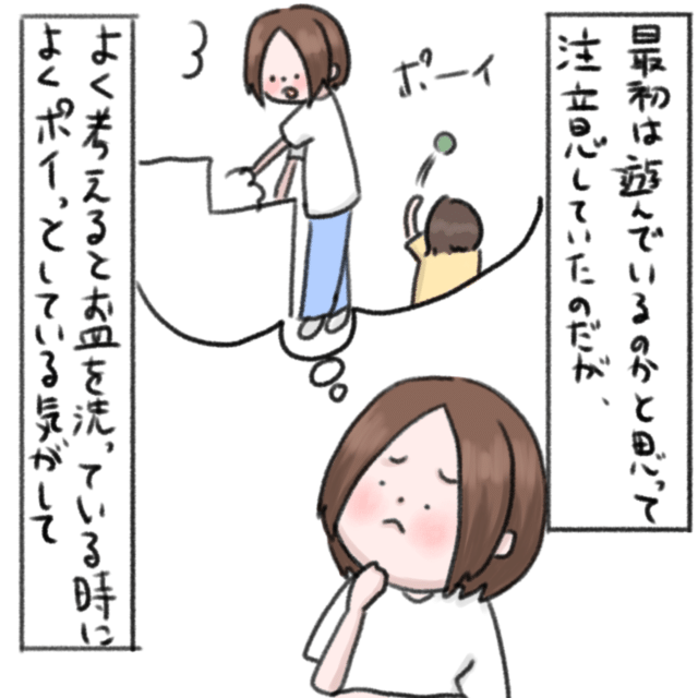 2歳の男の子みぃくんのお母ちゃんであるねむりひつじさんから、キッチンにボールを投げるみぃくんのお話です。お皿洗いをしている時に投げることが多いようで・・・