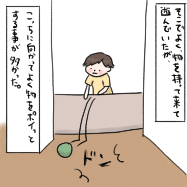 1歳息子・・ボールを投げたのは、気持ちを伝えるため?|ねむりひつじの子育て絵日記