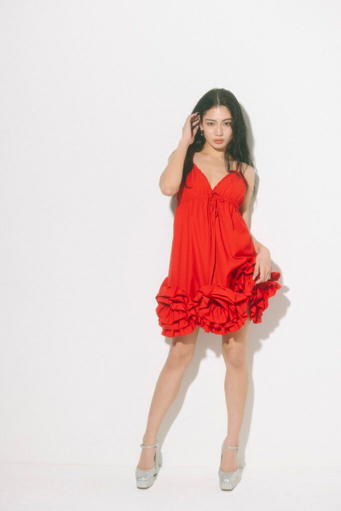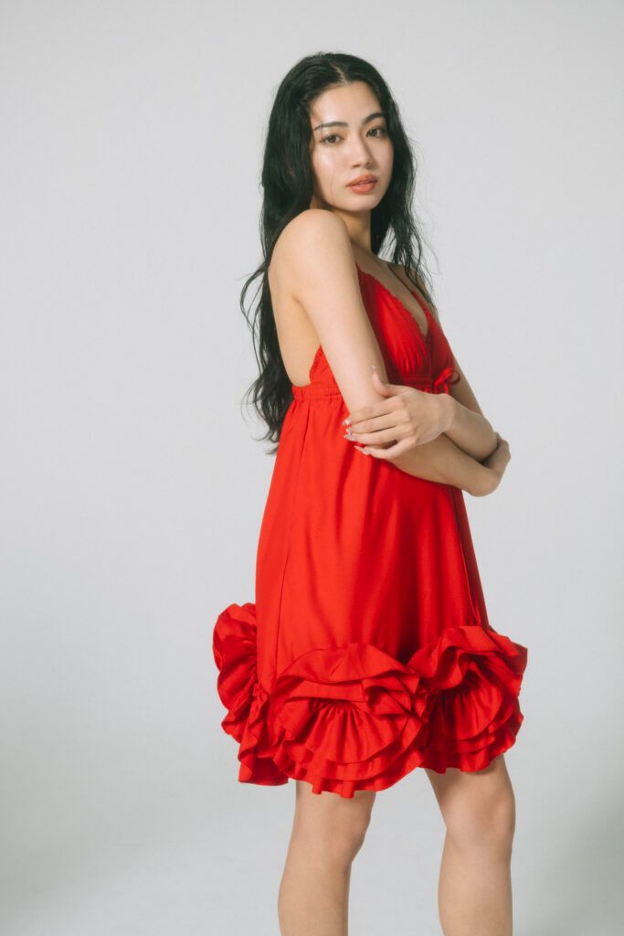 今日の衣装も自分でスタイリングしました。JJは私にとって特別な媒体だから、自分が1番好きな赤で、1番目立つドレスをセレクト。「イザイア」というブランドの今季のドレスで、裾が可愛いのがポイント!着てみたいファッションに挑戦しないのは、正直もったいないと思います。そうですね、海外旅行に行くと好きな服、着れちゃいませんか?大前提として、自分が心ときめく服を着ていいし、海外旅行で過ごすときみたいに、人目や自分らしさに囚われないでほしい。10代や20代は今だけで、その時期に似合うファッションはきっと変わる。だから、もししっくり来なくても、学びになるし着替えればいいだけだから、後悔するくらいなら着てみるっていうのはどう?あと、JJ時代はコンサバなコーディネートを着ることが多かったけれど、コンサバが私の得意なジャンルかって聞かれたら、そうではなくて。でも、コンサバを着こなす私をみてほしい!と思っていたから、こっそり襟元を崩してみたり袖をクシュっと捲ってみたり、ヘアメークで微調整したり、全身トータルで着こなす工夫を楽しんでいました!あと、個人的には、毎日のかけがえのない瞬間に何を着るかをすごく大事にしていて、それをモチベーションにして毎日楽しく生きています。桜が咲いたからピンクを着てみよう!とかね。ファッションは楽しんだもの勝ち。それに尽きると思います!