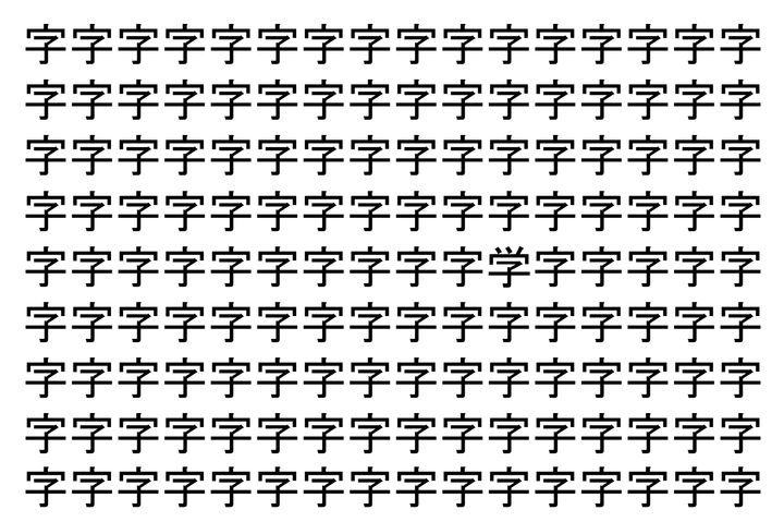 画像に並んだたくさんの「字」という漢字。 その数144個なのですが・・・、実はその中に1つ違う漢字が紛れ込んでいます!!