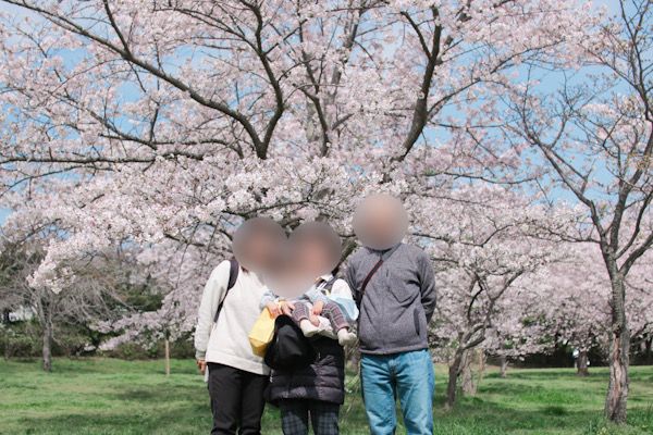 以下は去年の写真です。 桜の本数が多く奥行きがあり、緑の芝と青い空に薄桃色の桜の花がよく映えます。写真撮影にぴったり!