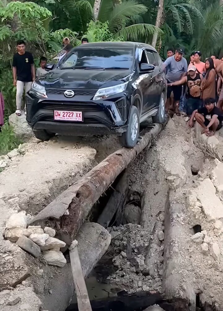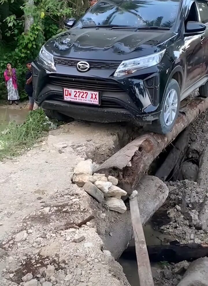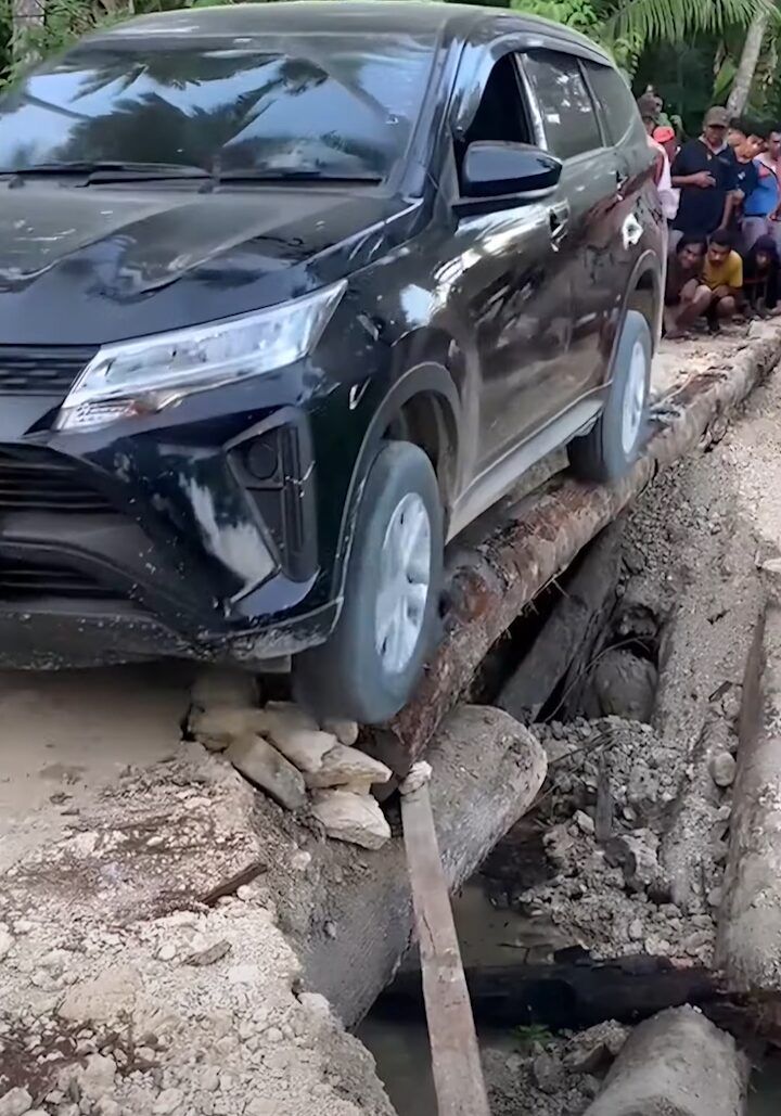 それもそのはず、この車が通ろうとしているのはとても細い橋の上だったのです!