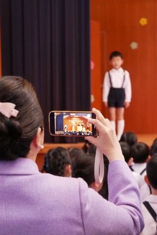泣く前にしっかり息子の凛々しい姿を目に焼き付ける。