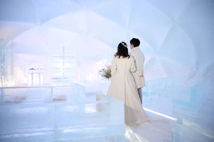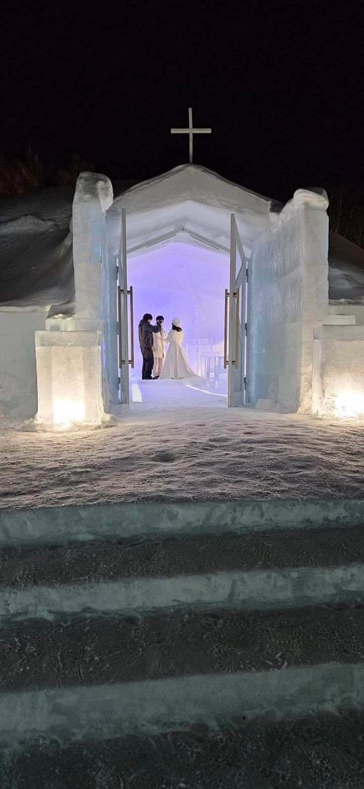 出典:MORE準備ができたら氷の教会まで歩いていきます!!!!!ここがめちゃくちゃ寒い!!!!!!一番寒かったです!!!!カイロを足にも腰にも貼り、カーディガン、ウルトラライトダウン、ガウンと超極暖もきてましたがしっかり寒かったです🧊笑