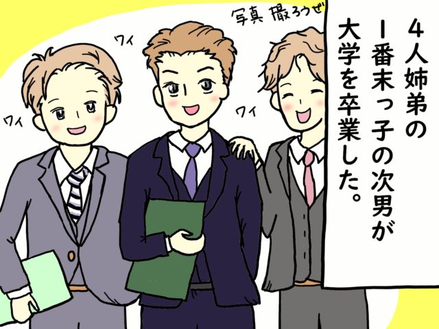 2男2女の4人きょうだいの母であるてる子さんから、次男よんの助さんの大学卒業で感じたことのお話です。