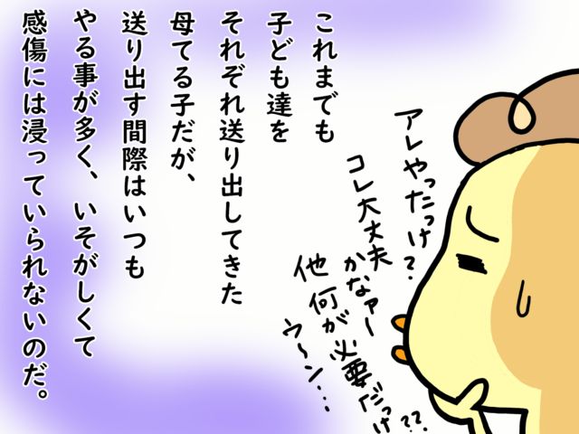 これまでもそれぞれに成長し家を出る子どもたちを送り出してきたてる子さんですが、いつもやることが多く、忙しくて感傷に浸ってはいられません。