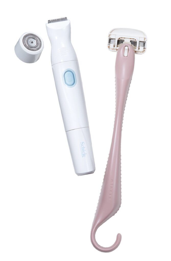 アンダーヘアの長さや量を調整できるトリマーヘッド、つるつるに仕上げるネット刃、2種類のアタッチメントを搭載。どちらも刃が肌に直接触れない設計なので安心。防水仕様でお風呂での使用もOK。¥3,278*編集部調べ(シック・ジャパン TEL:03・5487・6801)