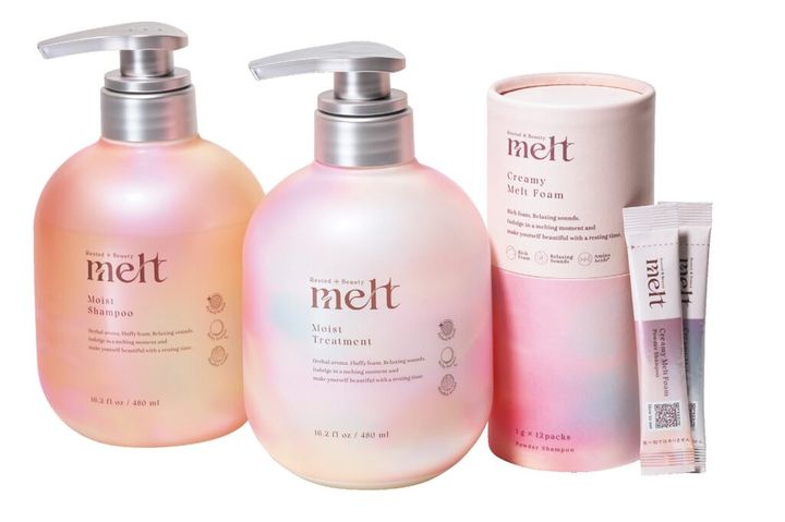 【メルト】左・メルト モイストシャンプー 中・メルト モイストトリートメント 右・メルト クリーミーメルトフォーム