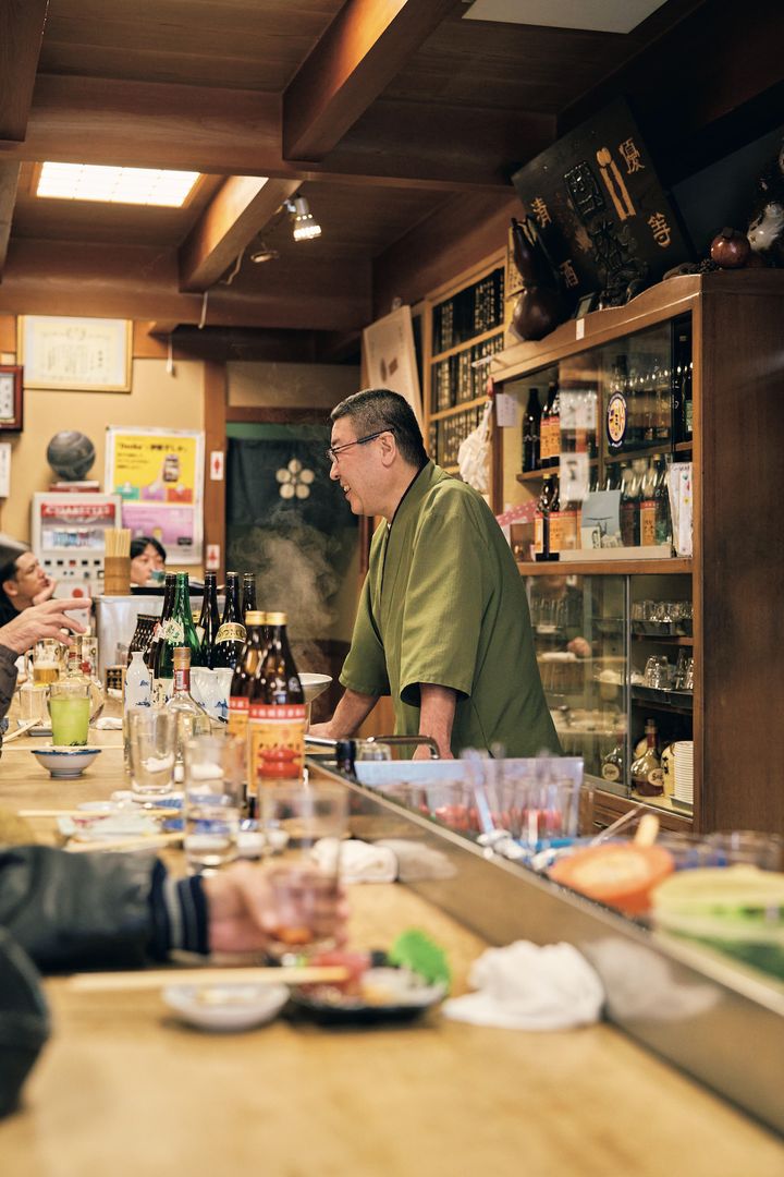 店主は4代目の森田一也さん。「料理は自己流やけどな、自分が好きなものでないとよう出さん。スピードも大事やで、せっかく飲みに来てくれてるのに待たせたらあかんしな。だから、なかなか電話に出られへんねん」