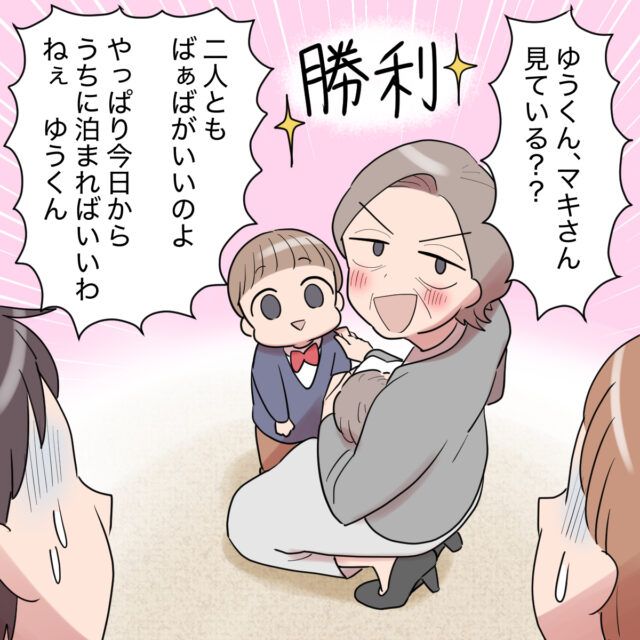 「ゆうくん、、マキさん見てる??2人ともばぁばがいいのよ!やっぱり今日からうちに泊まればいいわ!ねぇ、ゆうくん」