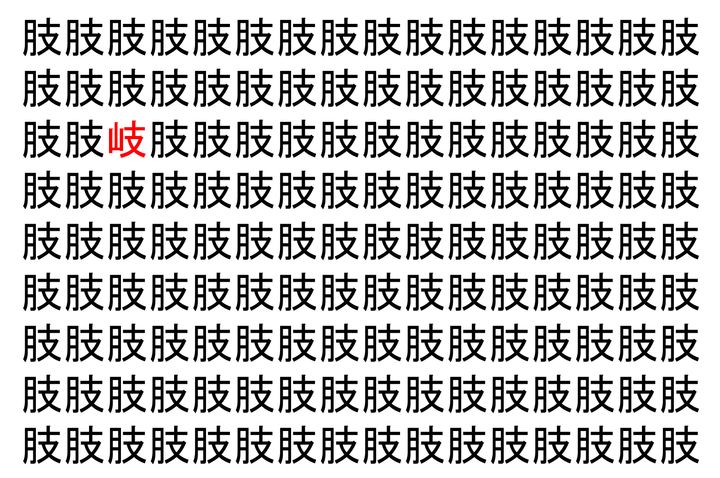 【脳トレ】「肢」の中に紛れて1つ違う文字がある!?あなたは何秒で探し出せるかな??【違う文字を探せ!】