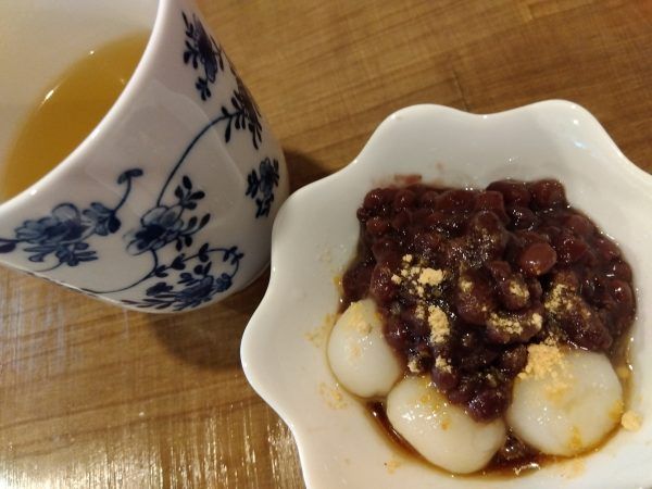 自家製あずきの白玉ぜんざい(180円) お客様のリクエストでメニュー化した甘味の白玉ぜんざい。食後にほっとする甘さで〇。他に、自家製あずきの白玉クリームぜんざい、アイスクリームがありますよ。