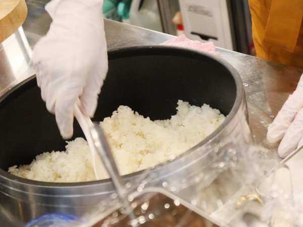 おにぎりのお米を炊くのは「直火の羽釜炊き」というこだわりのお店。 高火力で一気にお釜全体を均一に加熱しているので、粒が立ち歯応えある炊き上がりになるそう。一度に炊くお米の量を少なめにして釜の中の空気の割合を増やすことで、より圧力がかかり、ふっくらした食感のごはんが味わえるんですって。