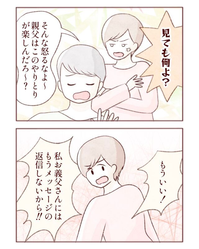「もういい!私、お義父さんにはもうメッセージの返信しないから!!」