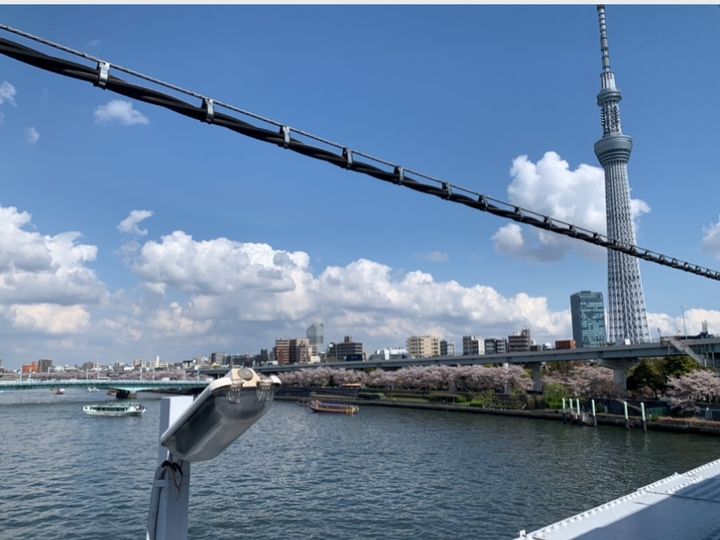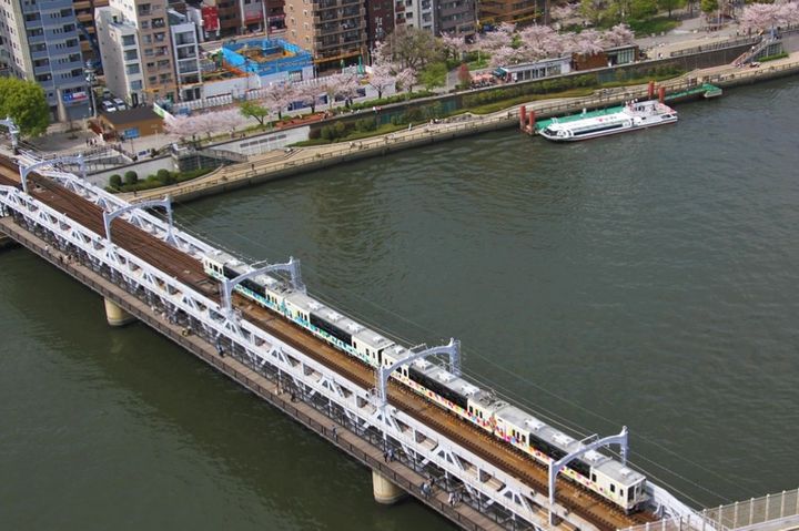 臨時列車「サクラトレイン」は、隅田川沿いに咲く満開の