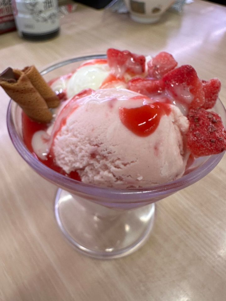 苺と北海道ミルクのアイスパフェ。420円。4月7日まで