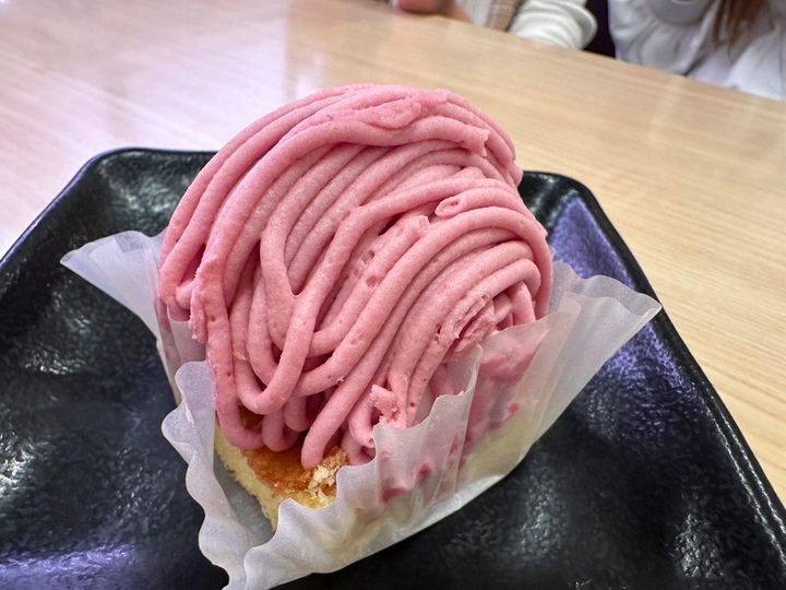 ピンクの苺モンブラン270円。こちらはまだまだ販売中。ぜひ食べて欲しい。